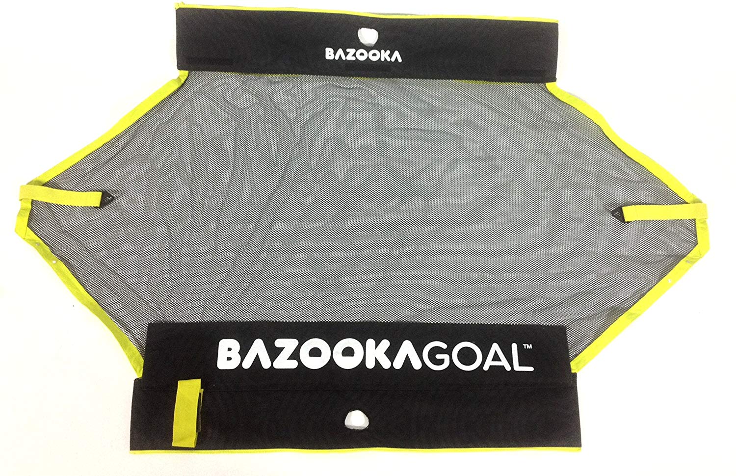 Red de repuesto para Bazookagoal 120 × 75. Tejido negro con ribete amarillo, cremalleras y tiras de velcro.